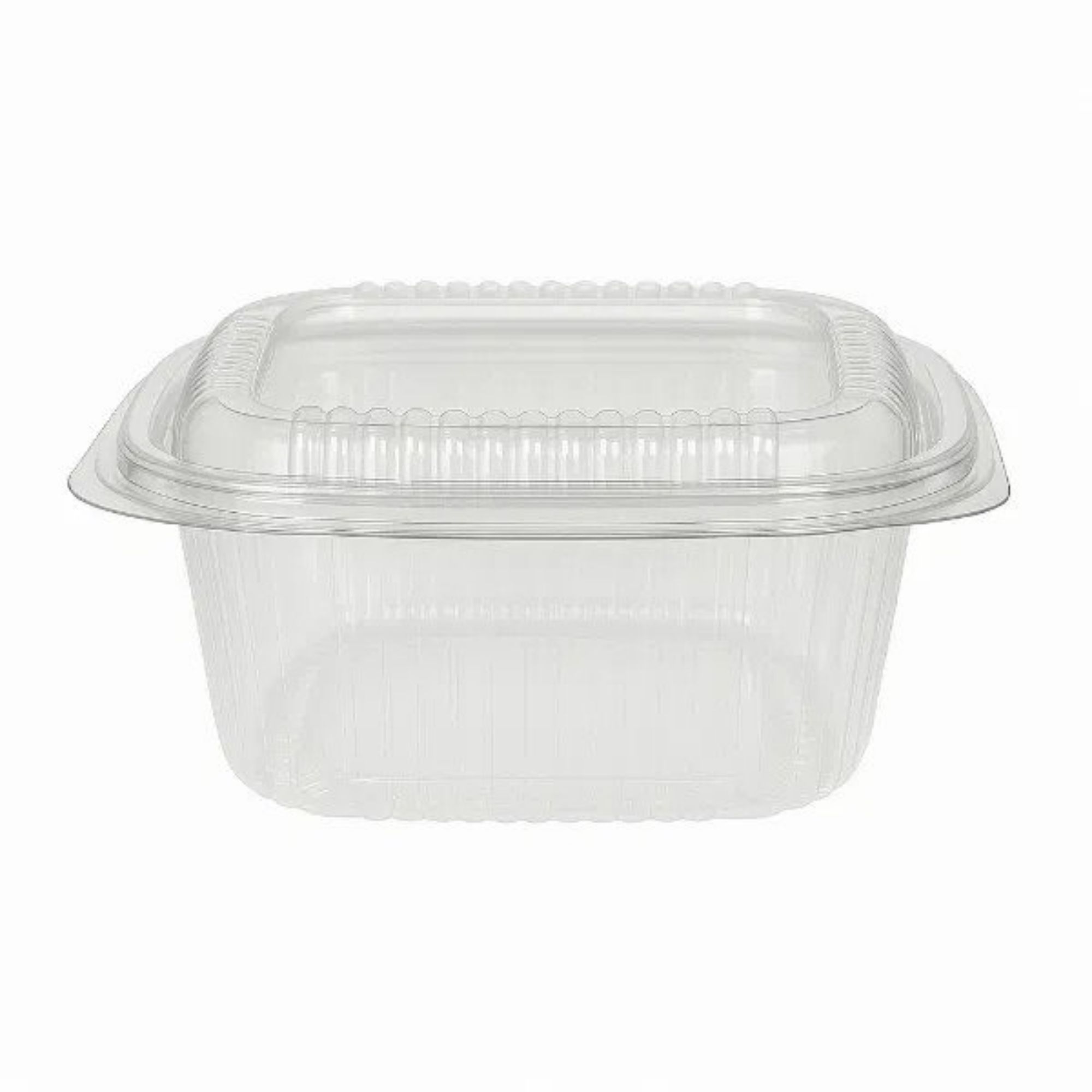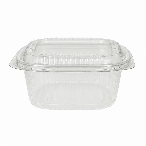 The 500cc rPET Square hinged salad container offers a larger capacity for salads and other food items. With 6 sets of 50 containers in each pack, it provides reliable storage and transportation. The hinged lid design allows for easy access and secure sealing.