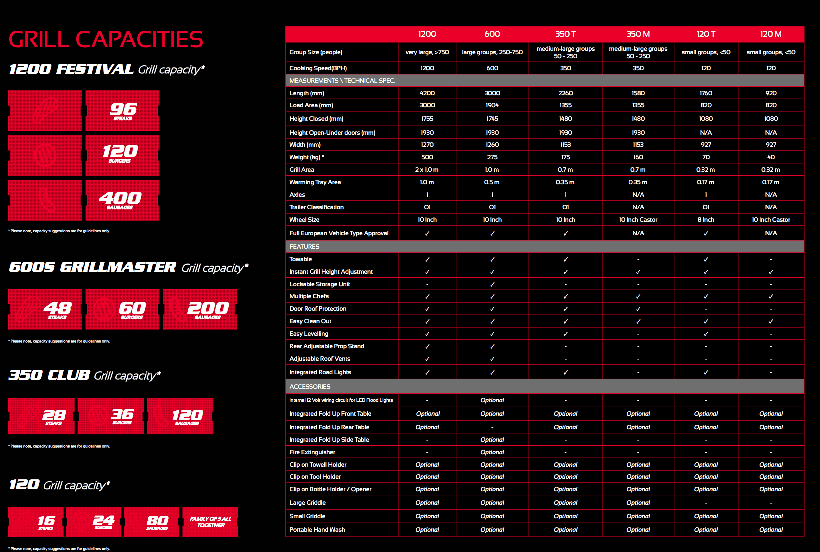 Alternatively, if you need to cook high quality cuts of meat and serve everyone at the same time such as at a wedding reception or VIP hospitality, the 1200 FESTIVAL is able to cook up to 96 steaks at the same time.